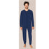 Pigiama da uomo IRGE realizzato in caldo cotone interlock, perfetto per le notti più fredde. Maglia a manica lunga con apertura e pantalone lungo con elastico in vita e polsini alla caviglia. Tessuto morbido, traspirante e resistente ai lavaggi, pensato per offrire massimo comfort e una vestibilità comoda.